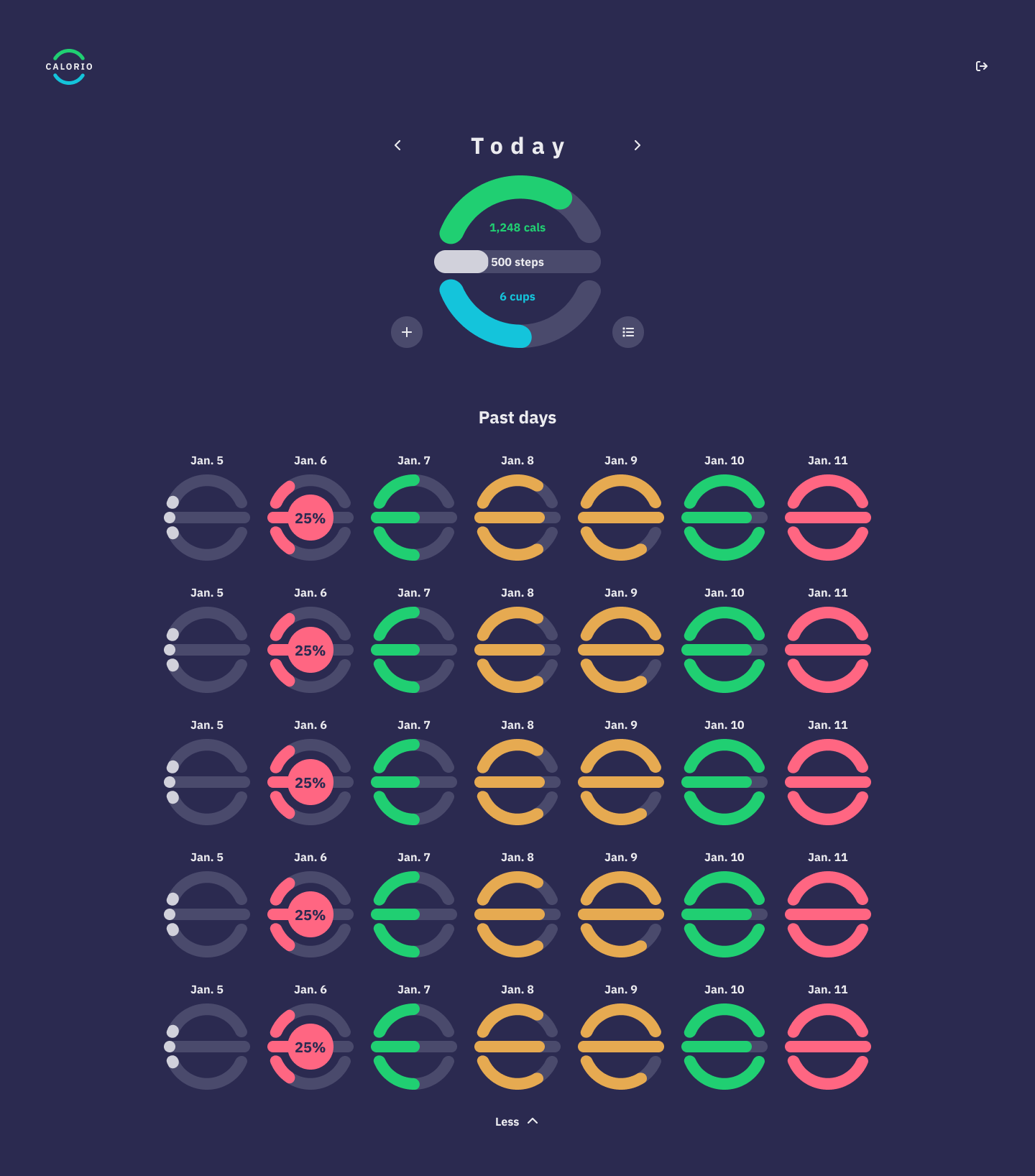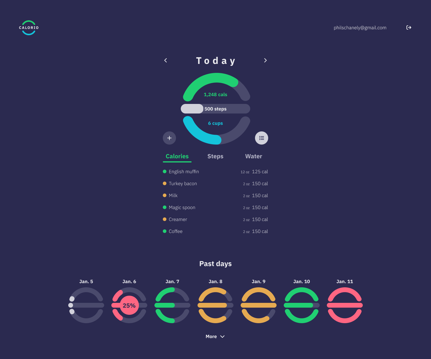 As a distinctly portfolio-focused piece, I'm working on a small app for tracking calories, steps, and water. I'm calling the project Calorio.